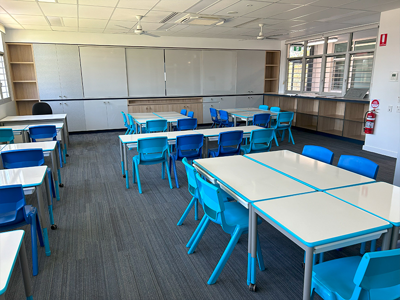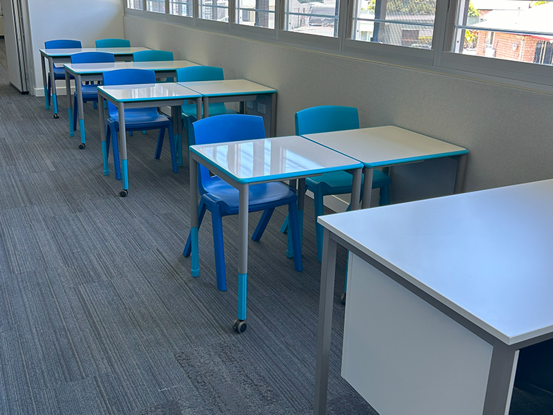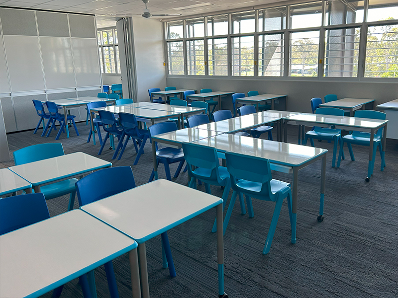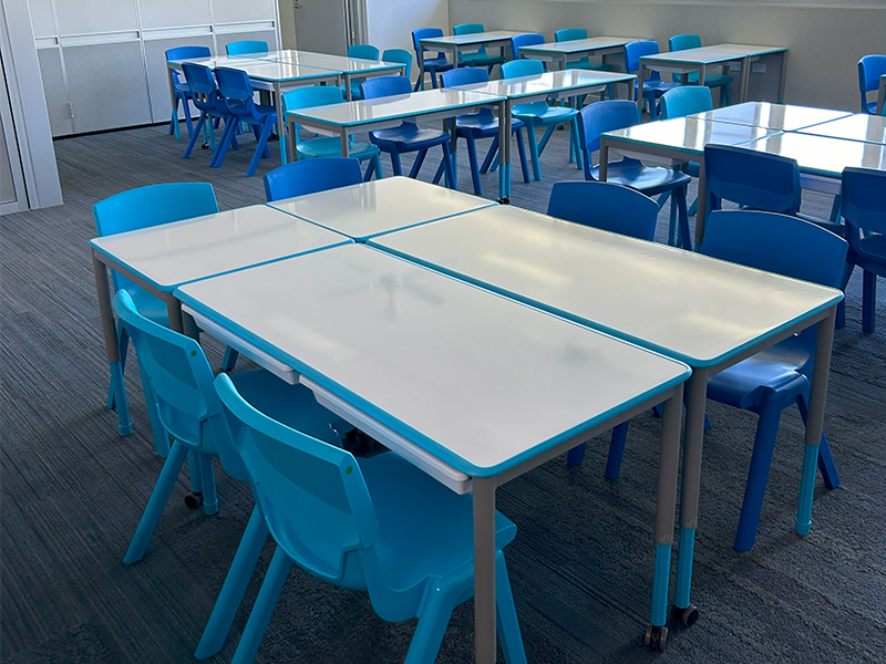 The goal was to create a flexible and engaging learning environment through the use of furniture. This was done through incorporating both single and double tables in each classroom and bringing in some vibrancy with colour palettes that reflected the school colours.