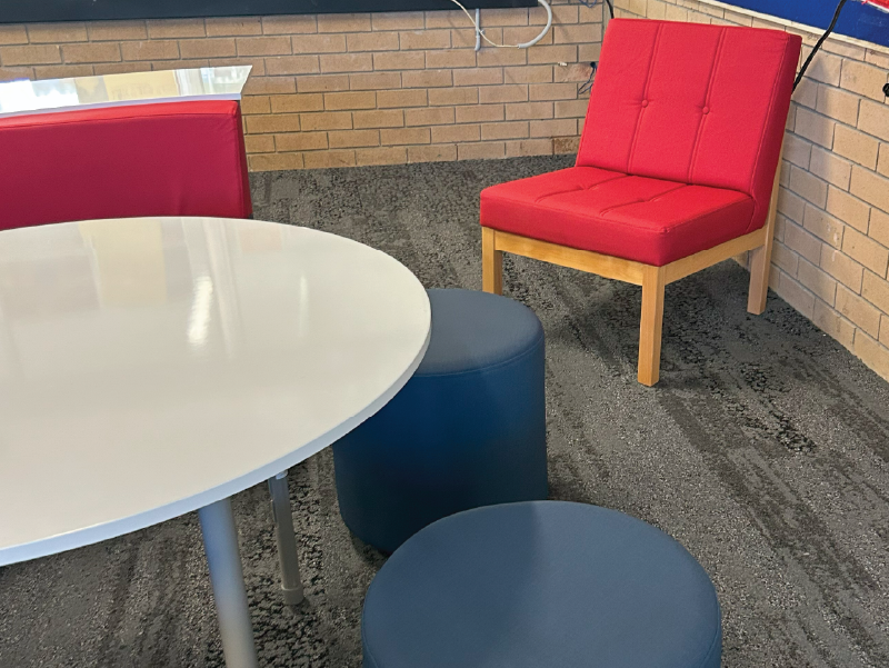 After understanding the project’s objectives, Sebel’s design app was used to design the spaces, carefully selecting furniture that would cater to the school’s requirements. The choices included Twist’n’Lock Tables, which provide various heights and shapes, along with Postura Max® Chairs. For the high tables, Postura® Plus Stools were chosen. Additionally, soft furnishings were incorporated to create a comfortable breakout area.