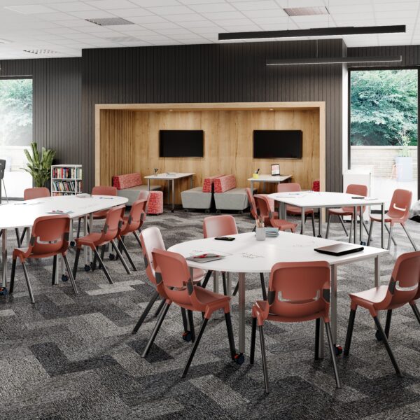Lightweight, moveable ergonomic chairs support group work, reconfigurable layouts and active learning models.