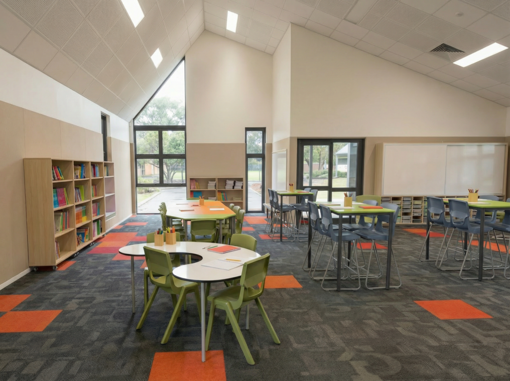Modern schools often include a variety of learning environments, each with different seating needs.
