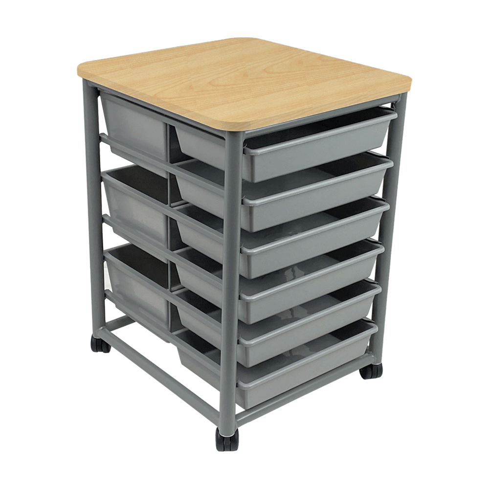 • Handy mobile storage trolley for tote trays with a Melteca top and robust 32mm steel frame.